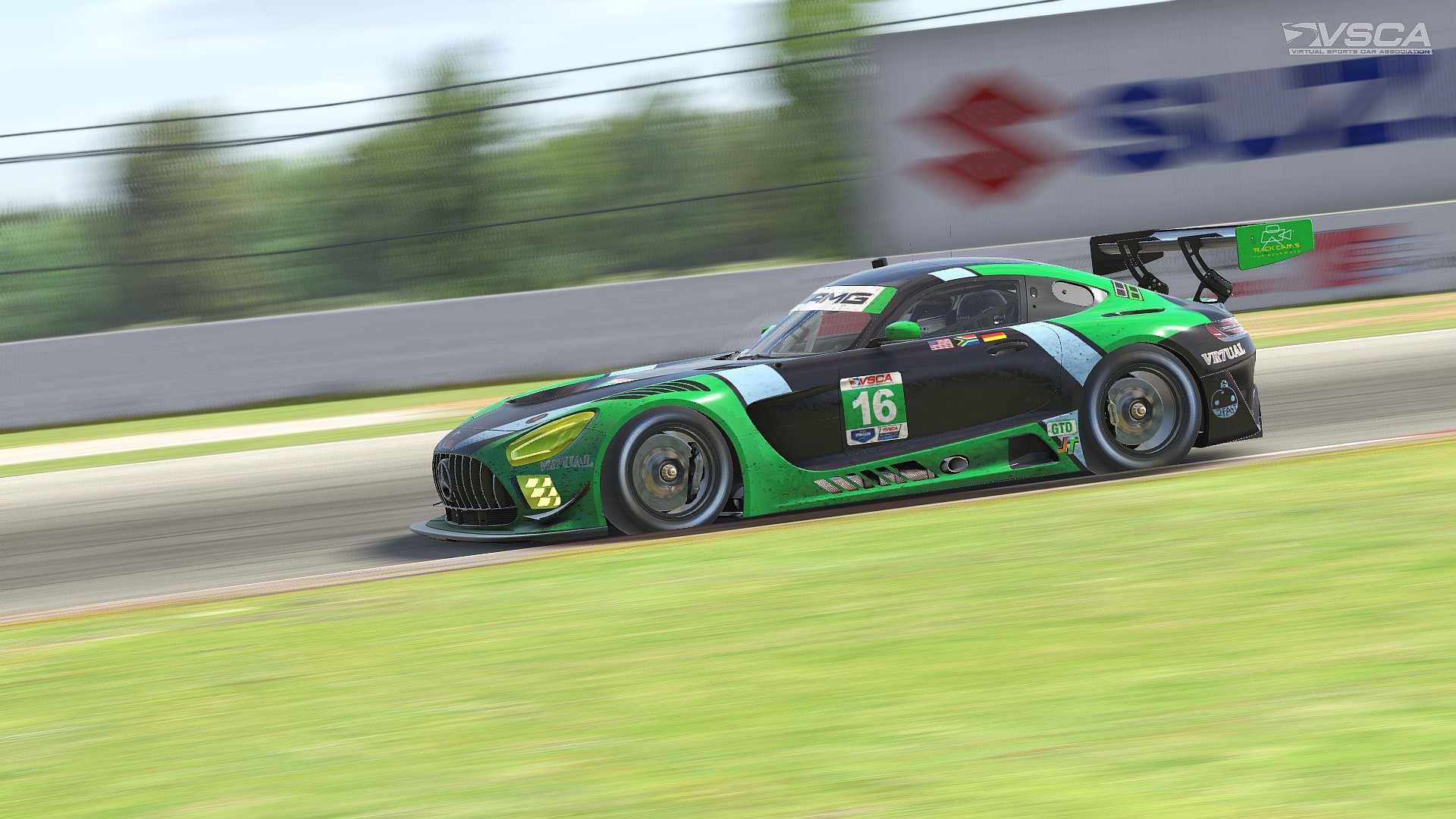 Upon entering the corner, the No. 393 MAD Sim Racing Mercedes AMG GT3 of Patrick Fogel directly behind made an aggressive move to the inside, the two cars touched and Nistor found himself in the wall, thus ending a promising run for the Denton, Texas based team in this race.