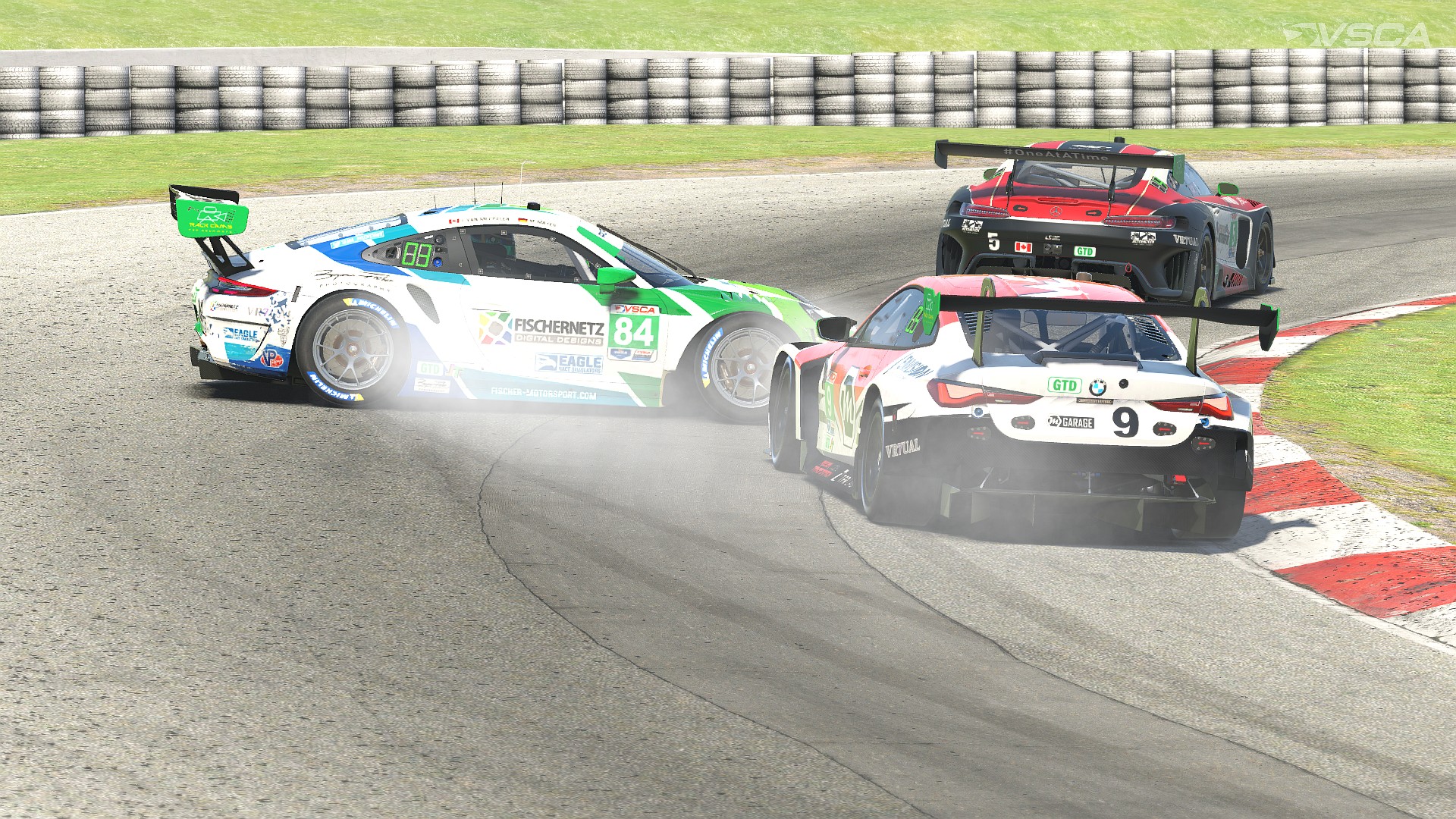 MAD Sim Racing and the No. 393 Mercedes team remain to sit in fourth and the No. 78 Champion Motorsports BMW drops to fifth, after their misfortune at CTMP.